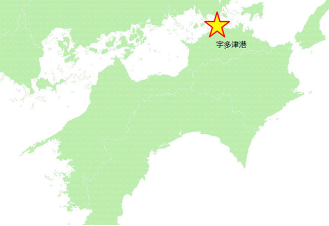 宇多津港は、香川県中部、瀬戸大橋の西隣に位置している。
